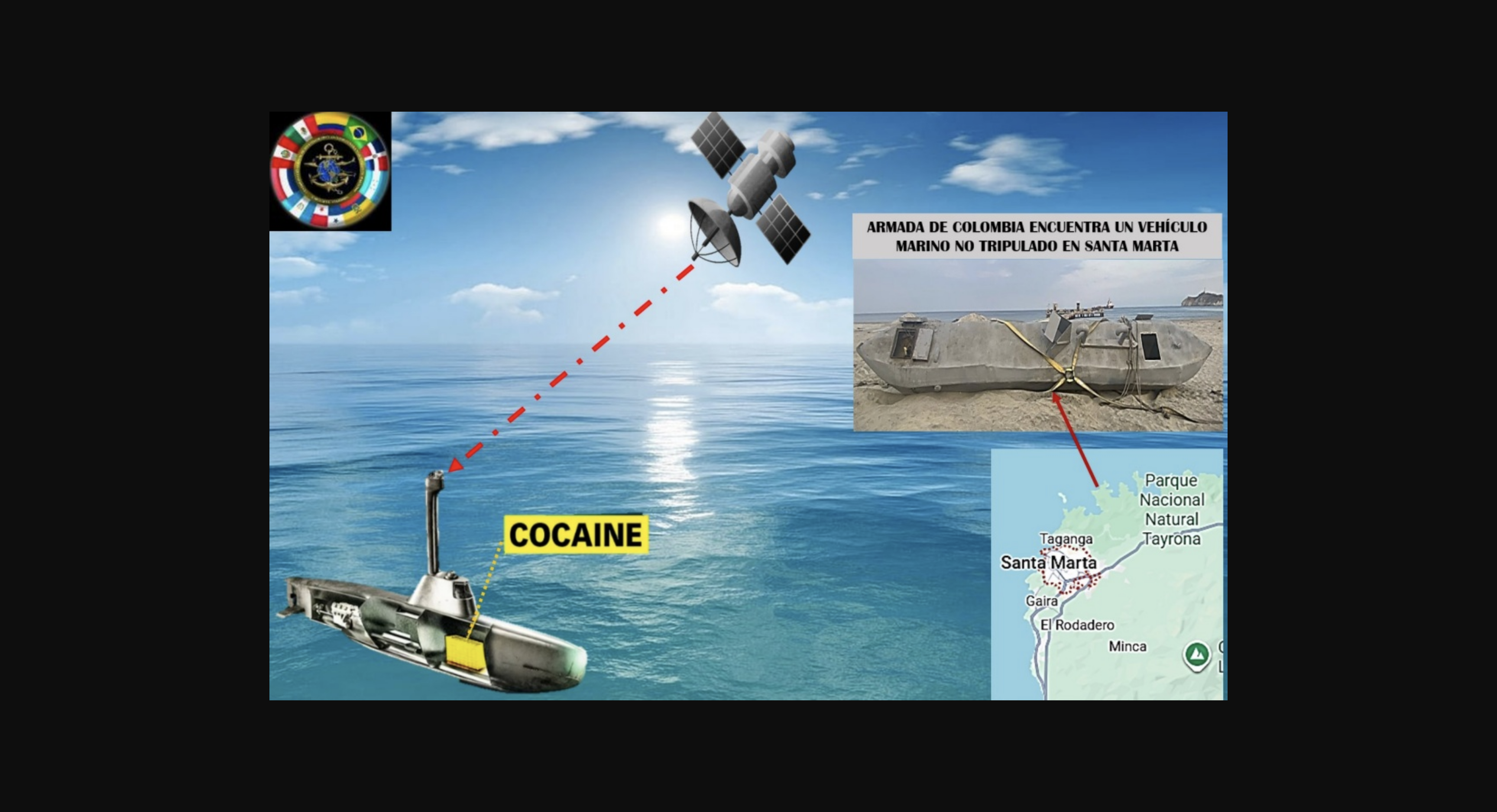 Contenido completo: El 3 de julio, Narcodiario reportó un descubrimiento que, a simple vista, podría parecer casi habitual en la costa del Caribe colombiano, pero que en realidad es muy singular. Este hallazgo ocurrió pocas horas antes, el día 2, en las proximidades de las playas del Parque Tayrona, en Santa Marta. La Armada Nacional identificó el primer narcosubmarino no tripulado destinado al transporte de cocaína, y es considerado «el artefacto más grande y avanzado tecnológicamente descubierto a nivel mundial hasta la fecha» en lo que respecta a tecnología teledirigida, sin requerir de tripulación.