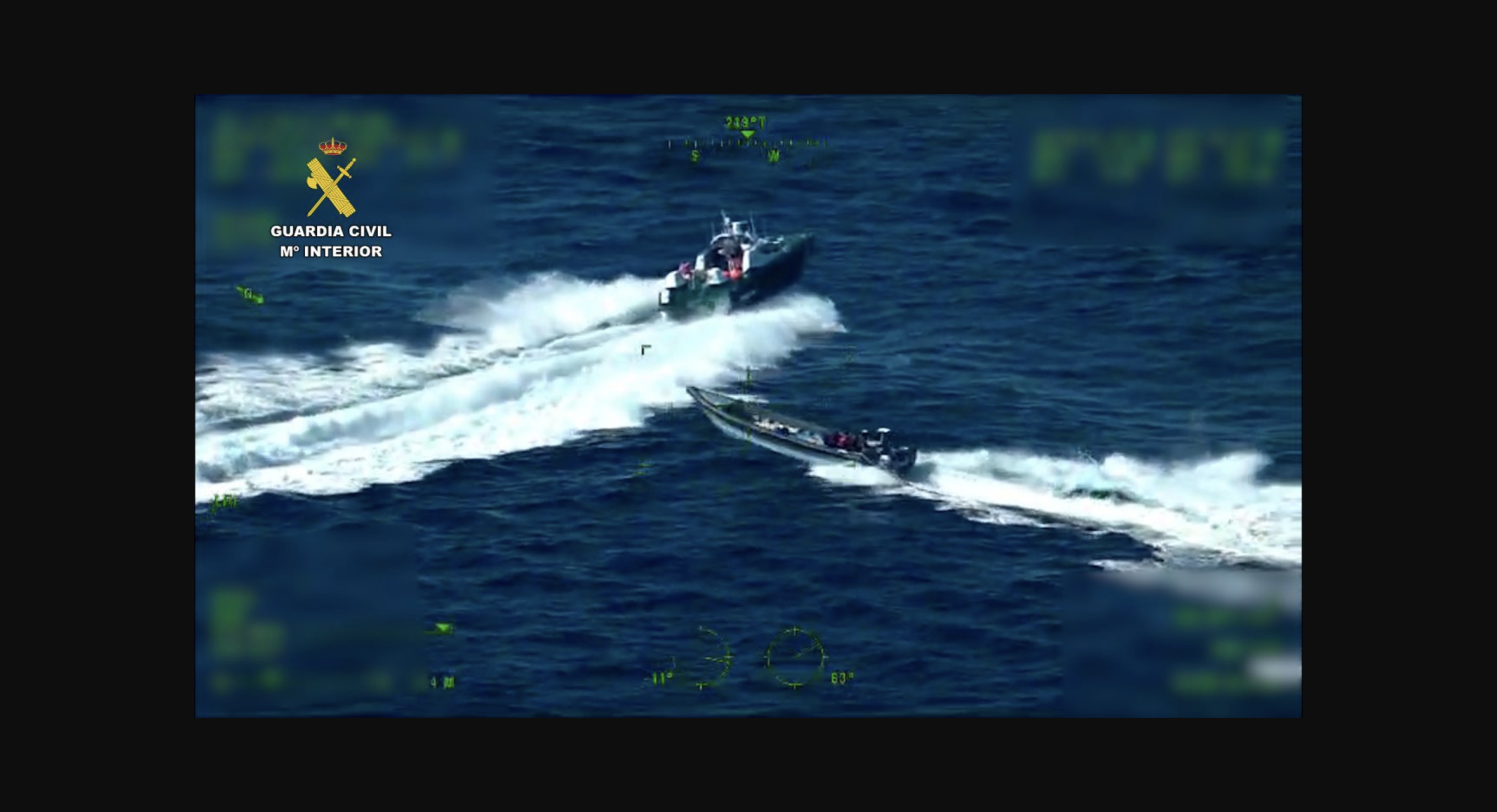 Título: Enfrentamiento en el Estrecho: dos patrulleras y un helicóptero de la Guardia Civil frente a tres embarcaciones ilegales