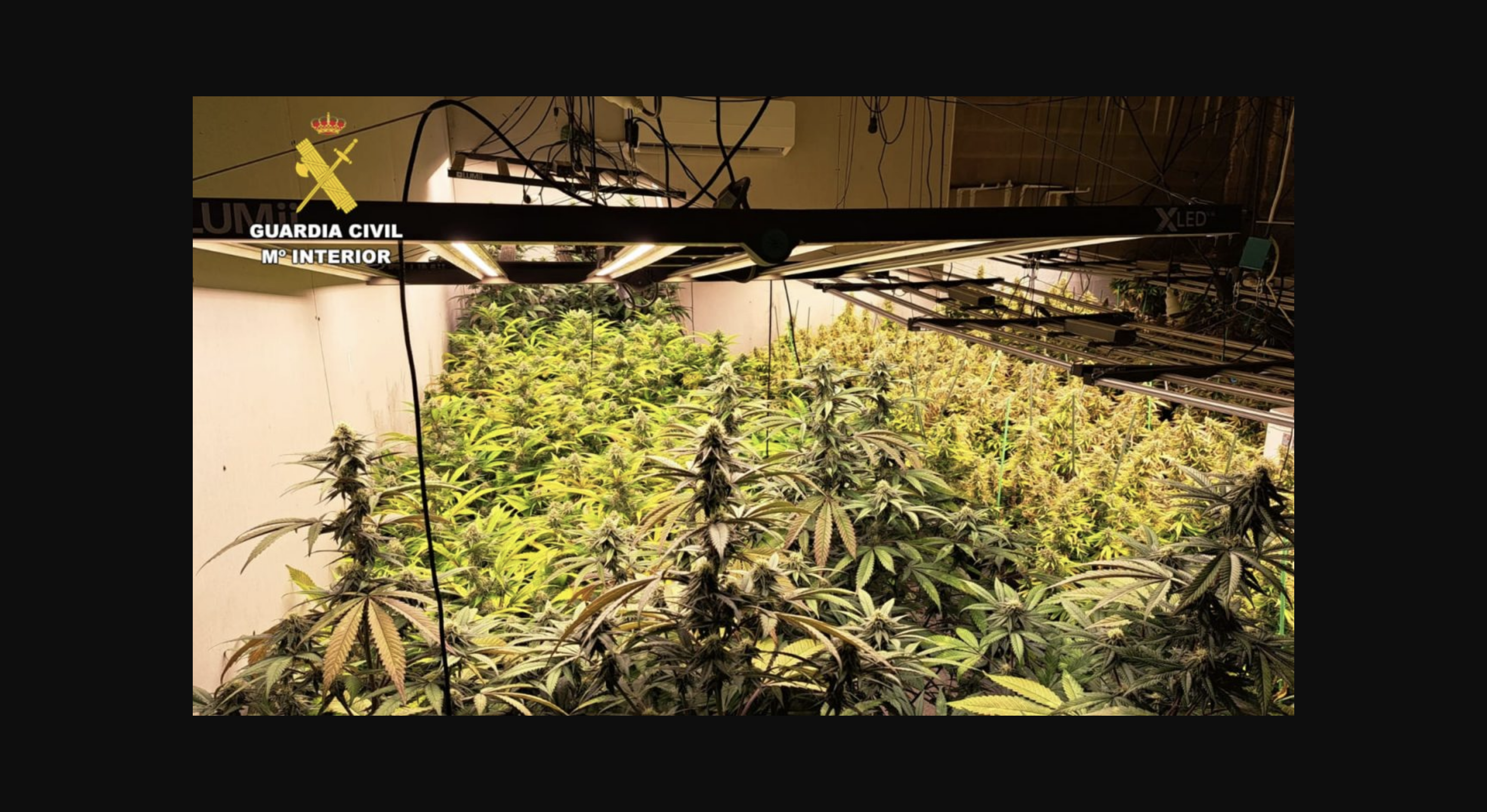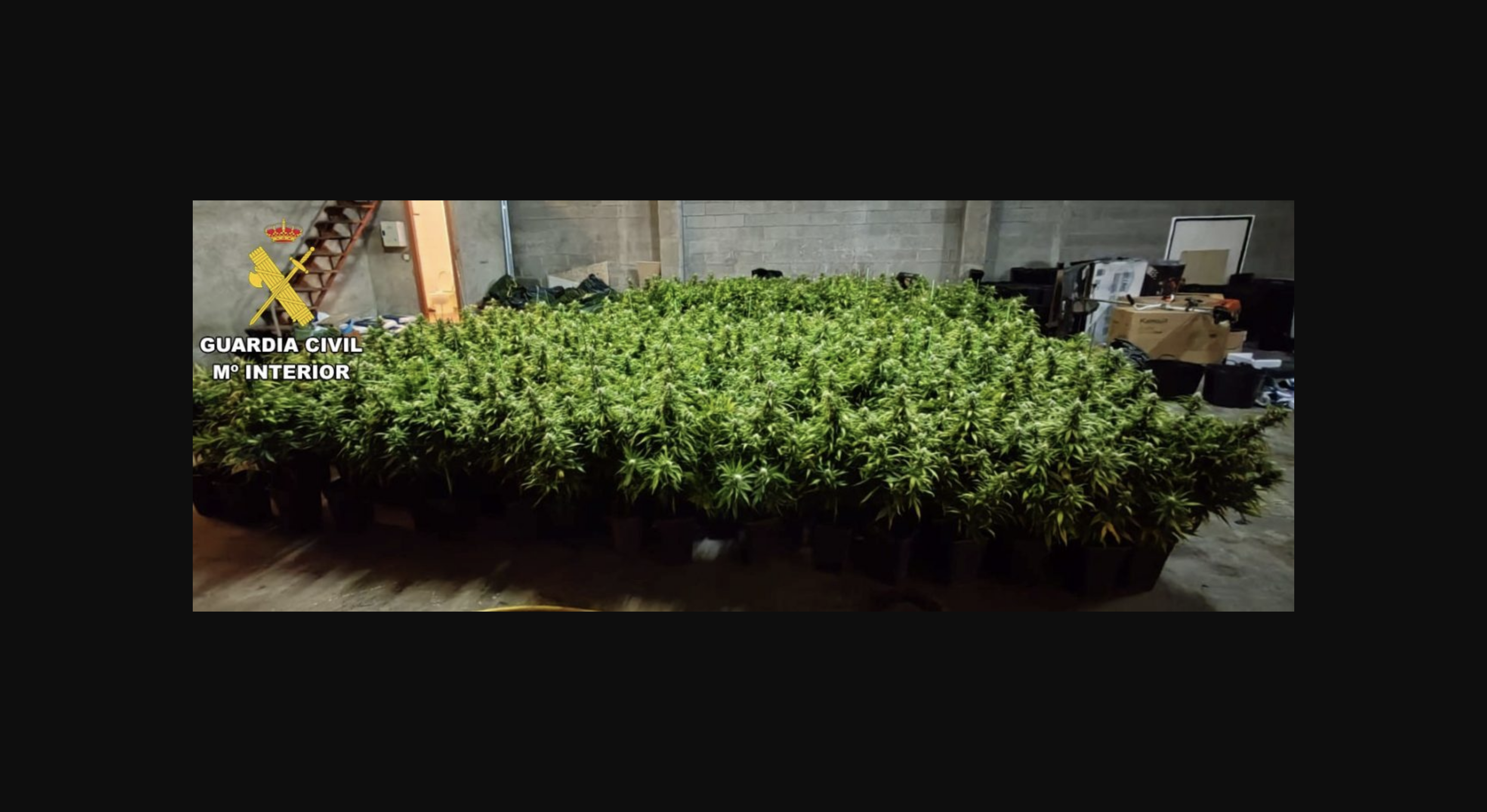 La Guardia Civil llevó a cabo una inspección de la mencionada nave, encontrando en su interior una plantación en interiores con 800 plantas de cannabis sativa, equipada con sistemas de iluminación, ventilación y control térmico, así como 430 gramos de marihuana seca y lista para su manipulación, procediendo a la incautación de todos los efectos hallados.