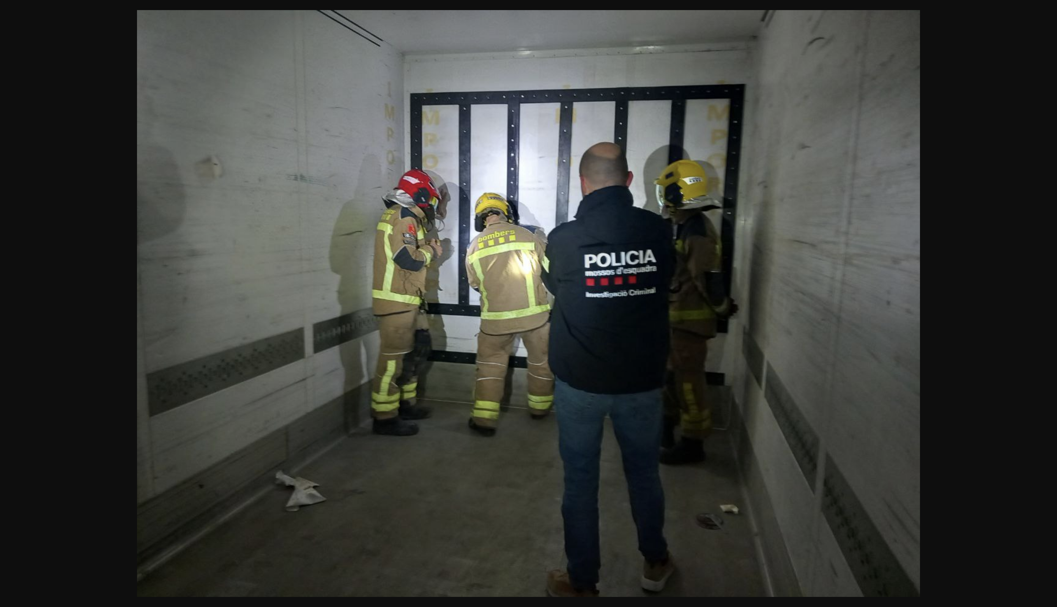 Ante estas pruebas, se sospechó de la existencia de un doble fondo y se activaron los Bomberos de la Generalitat para que abrieran la pared y verificaran su contenido. Tras la apertura, se encontraron cuatro fardos que contenían un total de 58 bolsas con 60 kilos de cogollos de marihuana envasados al vacío.
