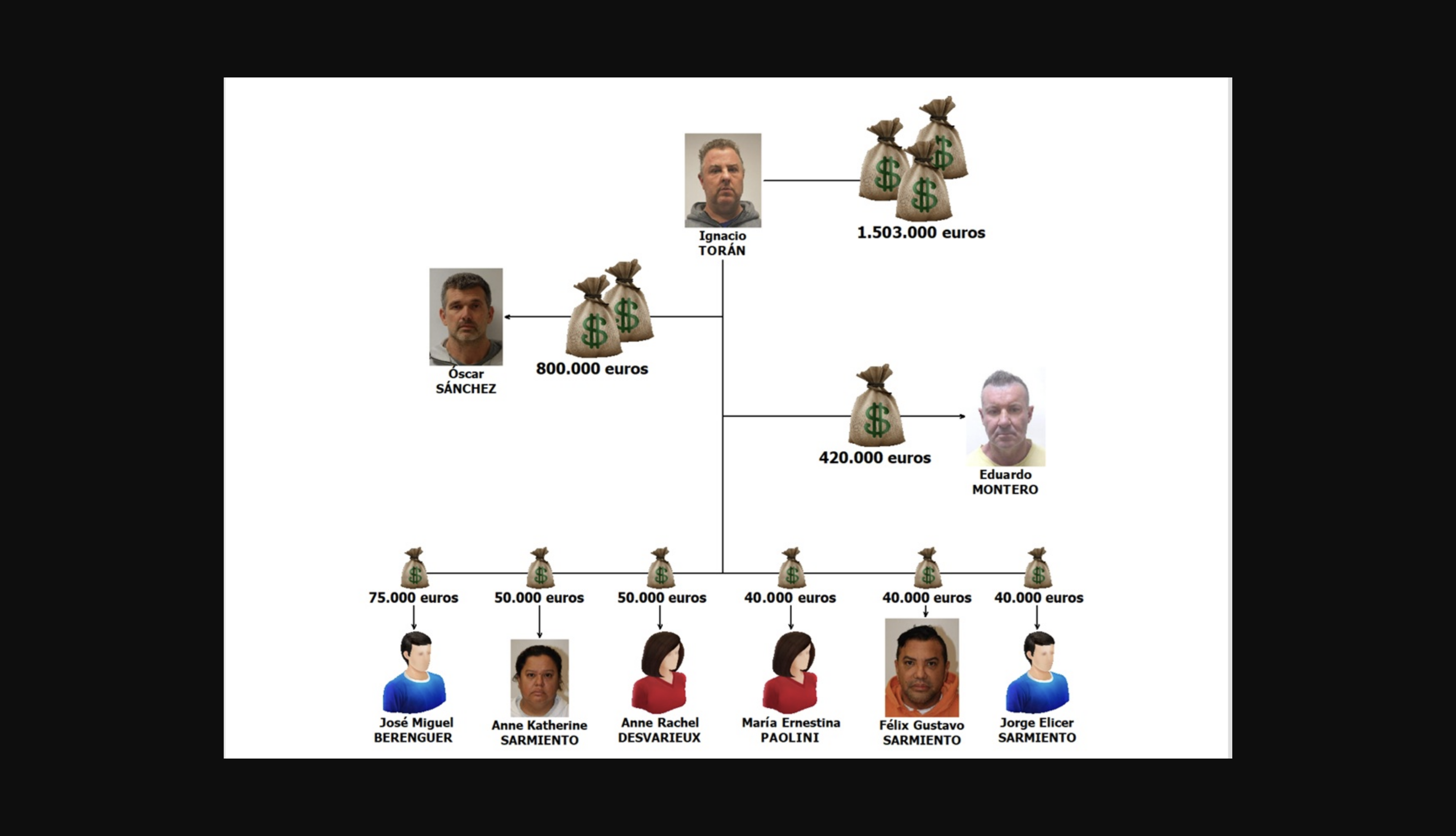 De este modo, Torán recibiría 1,5 millones, Óscar 800.000, Montero 450.000 y el resto de los miembros de la organización en España entre 40.000 y 75.000 euros. Estas sumas son astronómicas y ayudan a entender el hallazgo de casi 20 millones en la vivienda del inspector jefe, aunque dichos números se quedan cortos al considerar las cantidades que maneja La Junta del Narcotráfico. Una Junta en cuya mesa se sienta, probablemente, Ignacio Torán.